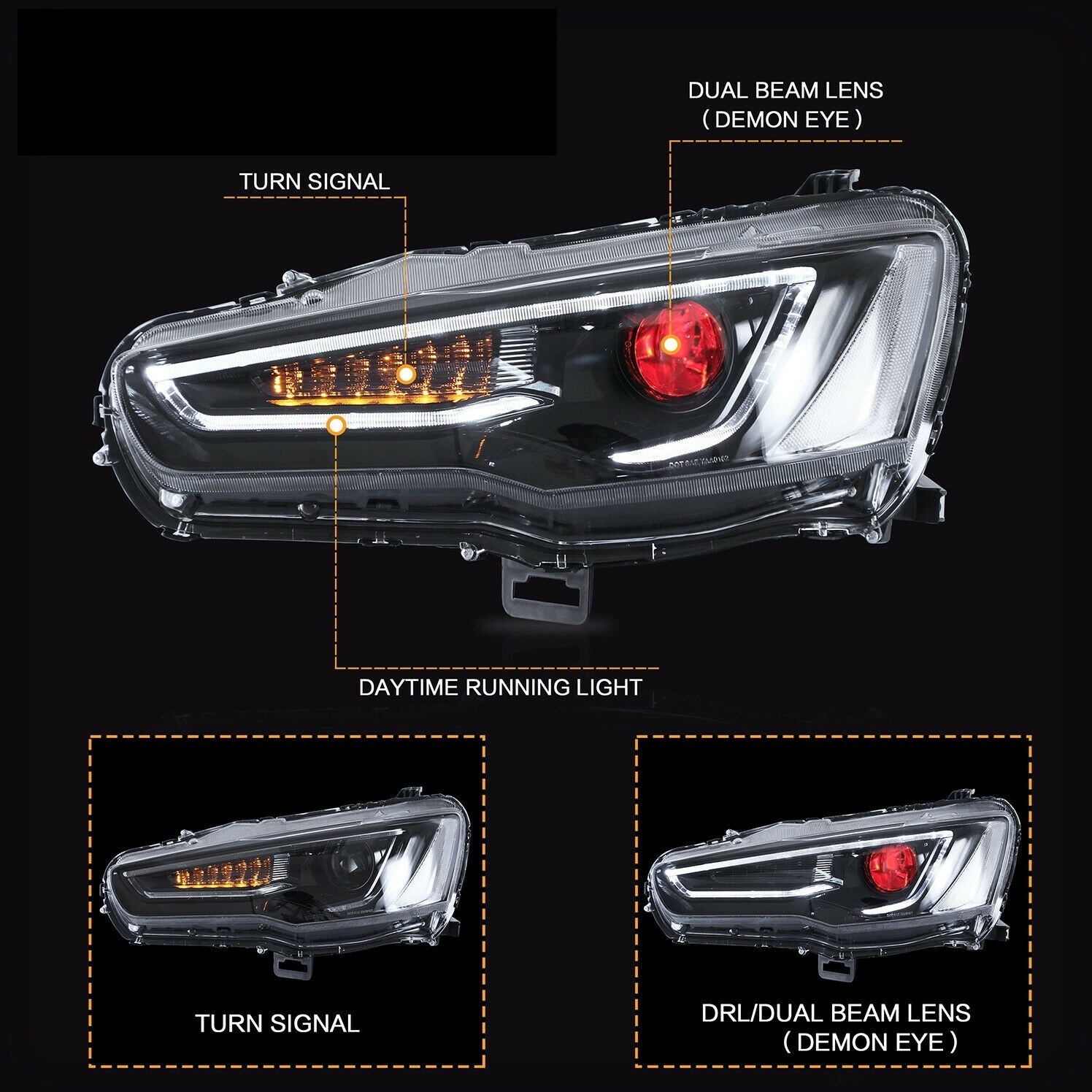 3D LED DRL Projector Headlight
