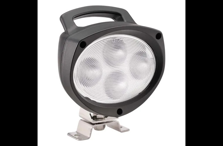 An Extremely Versatile, Modern Low Profile Work Lamp Delivering Brilliant White Light Output Via Ultra-Reliable Long Life L.E.D Technology. A Robust Nylon Reinforced Housing, Ergonomic Integrated Handle Inbuilt Weatherproof Off/On Switch And Multi-Directional Spring Loaded Mounting Bracket Offers Quick And Secure Beam Adjustment
