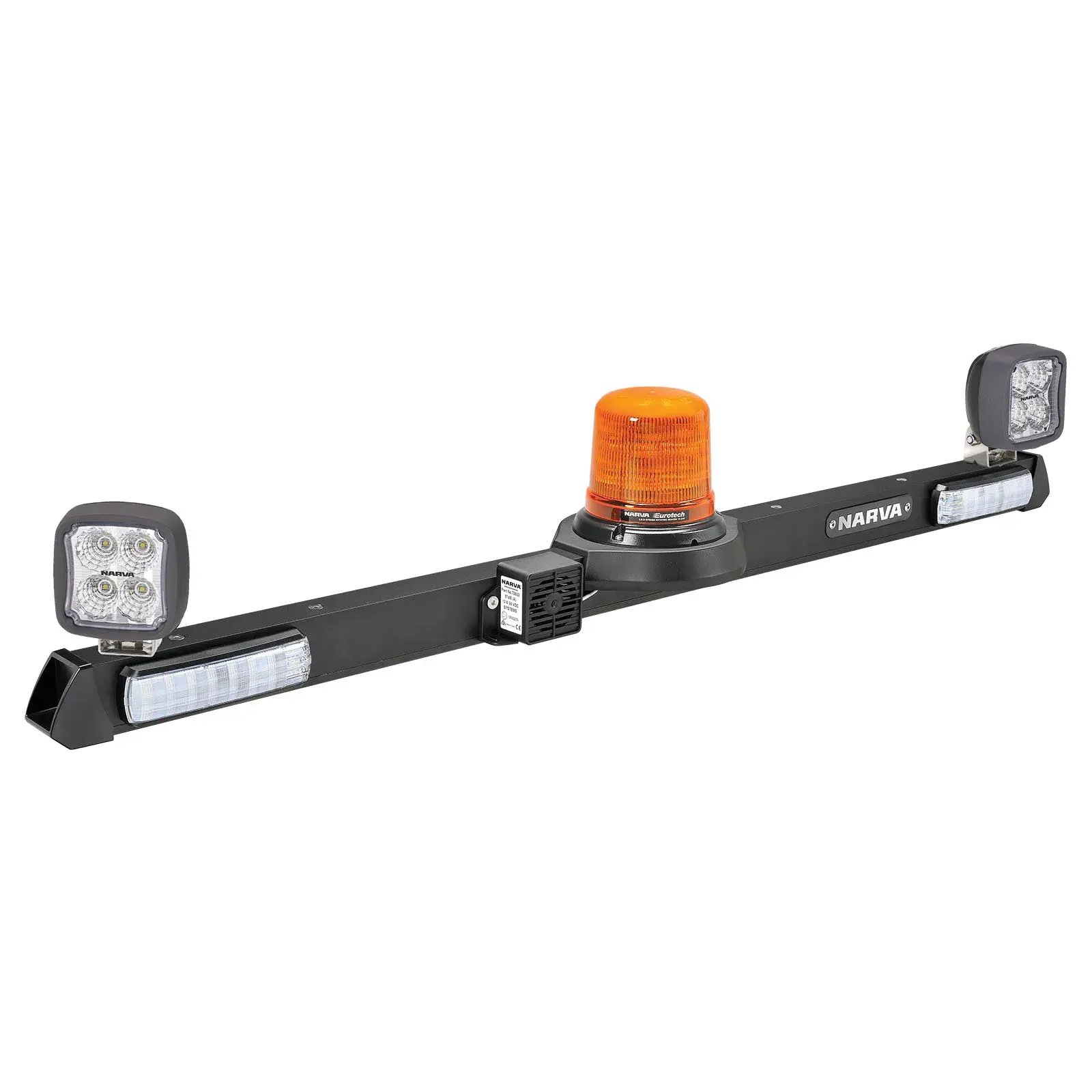 Comprises:12/24V L.E.D Rotating Strobe;  10-30V L.E.D Stop/Tail, Direction Indicator And Supplementary Reverse Lamps; 12/24V Fixed Output Reversing Alarm – 97dB; 2 Piece ‘Serviceable’ Aluminium Bar – Black Anodised With T-Slot Mounting System; L.E.D Work Lamps (Flood Beam - 1800 Lumens)