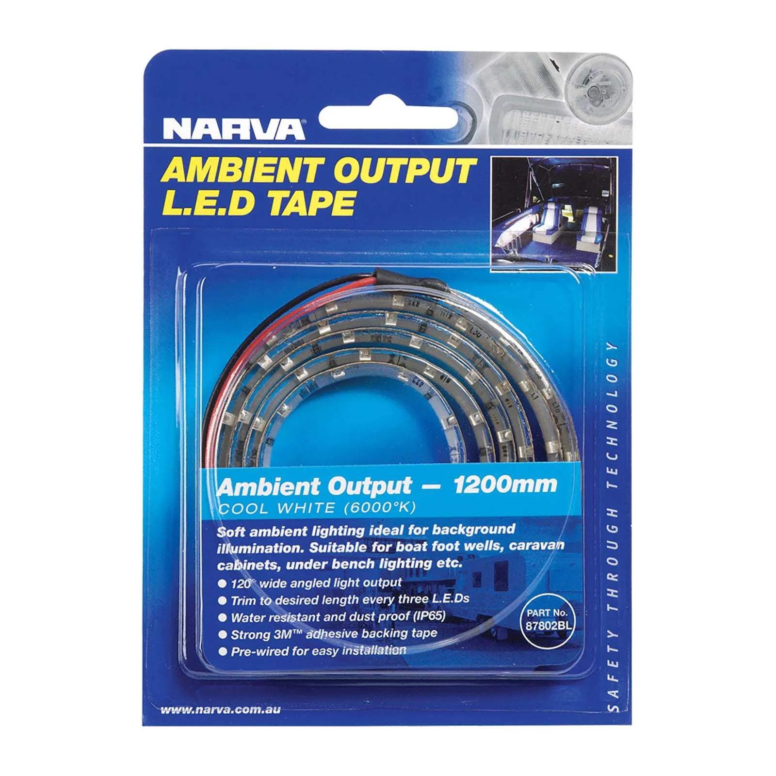 Flexible L.E.D Tape Provides a Soft, Cool White Ambient Light Ideal For Background Illumination. Ideal For Boat Footwells, Caravan Cabinets, Under Benches Etc. Self Adhesive With Strong 3MTM Backing Tape