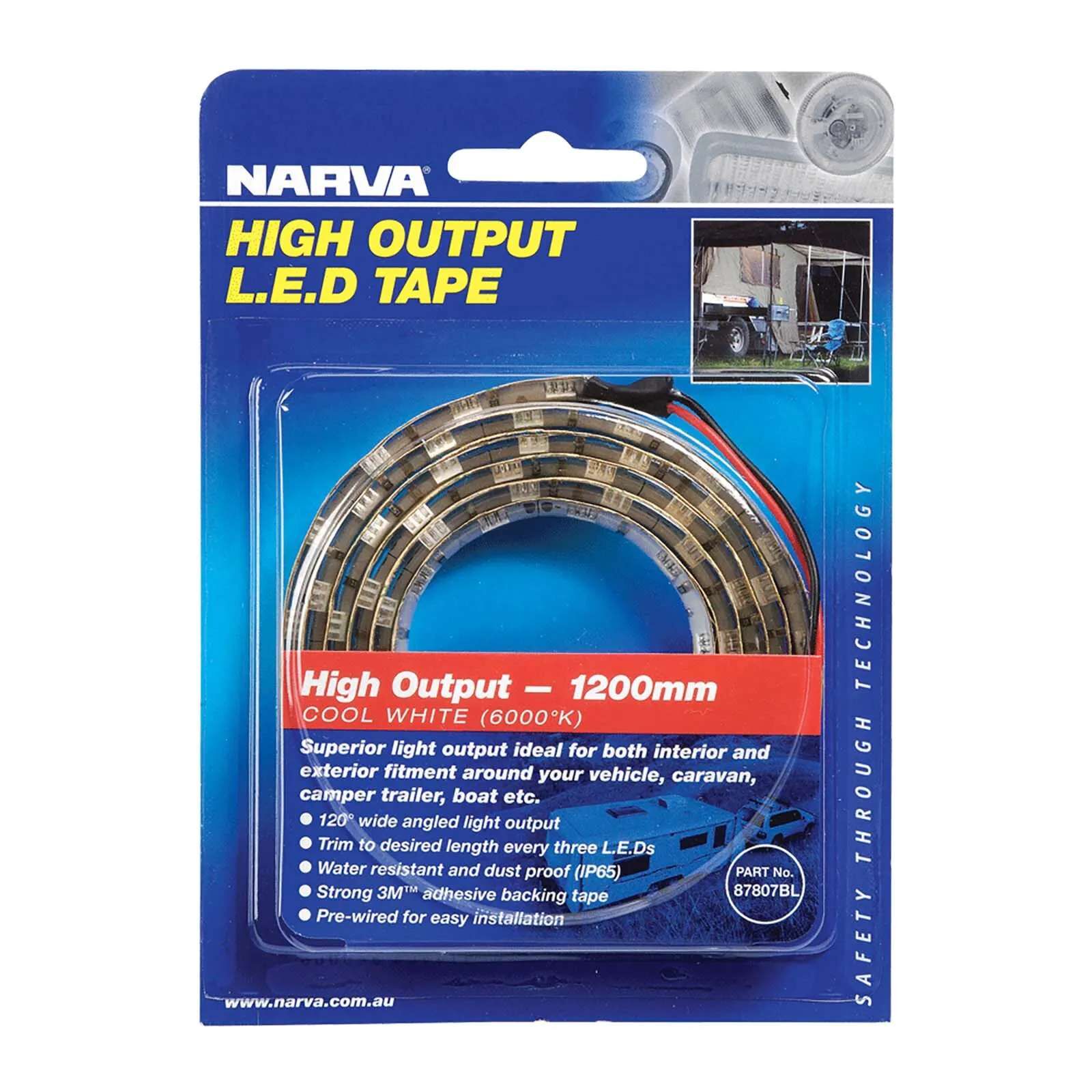 Flexible L.E.D Tape Provides a Soft, Cool White Ambient Light Ideal For Background Illumination. Ideal For Boat Footwells, Caravan Cabinets, Under Benches Etc. Self Adhesive With Strong 3MTM Backing Tape