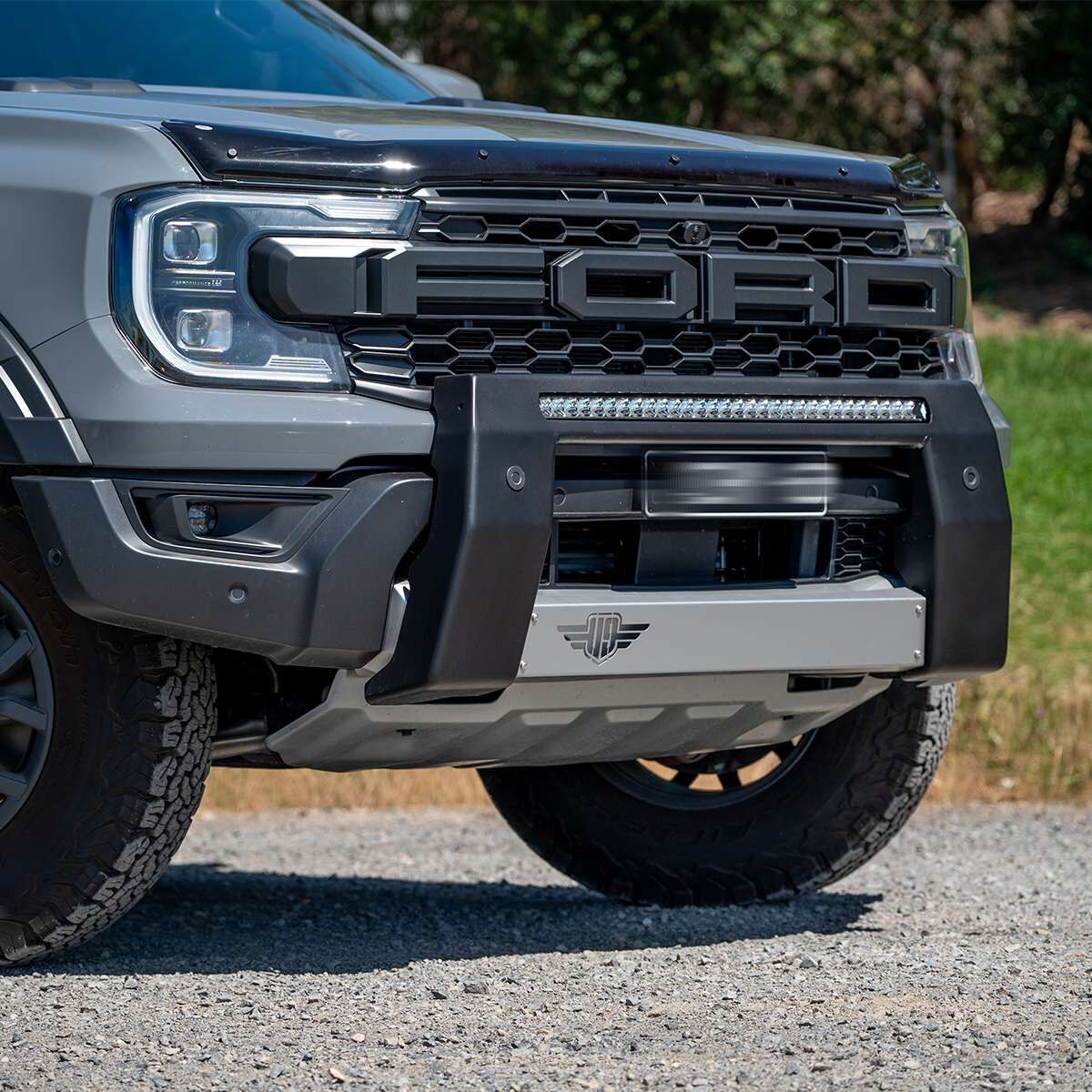 The Ultimate Nudge Bar To Suit Ford Ranger Raptor 2022 - ON (Next-Gen, T6.2 - 2nd Gen) Includes Laser-Cut Points To Fit An Additional Light Bar On Top Of The Nudge Bar.